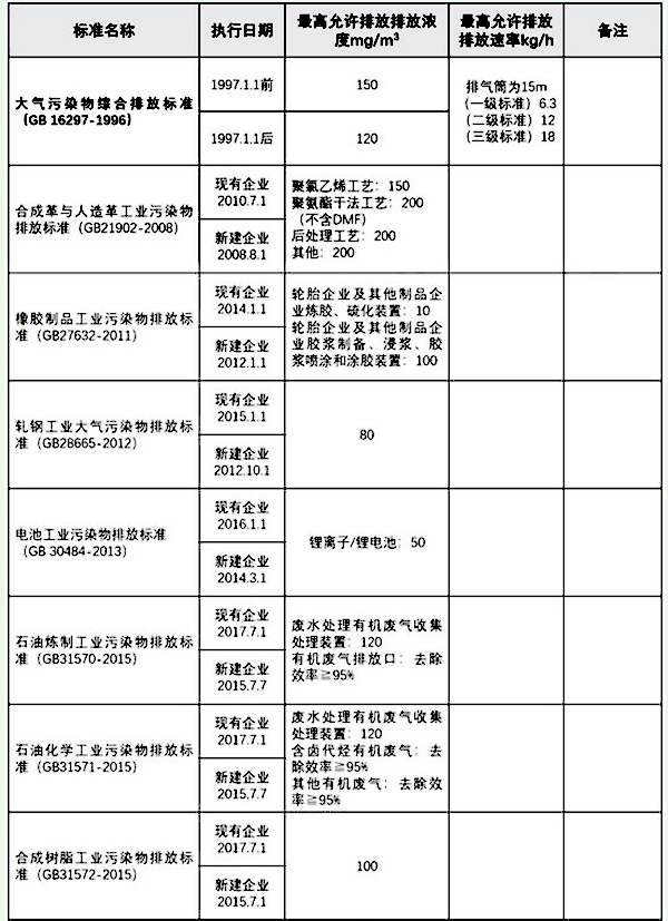 國(guó)家VOCs有機(jī)廢氣排放標(biāo)準(zhǔn)